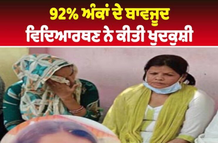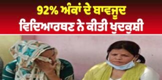 92% ਅੰਕਾਂ ਦੇ ਬਾਵਜੂਦ ਵਿਦਿਆਰਥਣ ਨੇ ਕੀਤੀ ਖੁਦਕੁਸ਼ੀ