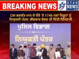 ਜਲੰਧਰ ‘ਚ CM ਭਗਵੰਤ ਮਾਨ ਦੇ ਦੌਰੇ ‘ਤੇ 1746 ਨਵਾਂ ਰਿਕ੍ਰੂਟਾਂ ਨੂੰ ਨਿਯੁਕਤੀ ਪੱਤਰ: ਗੈਂਗਵਾਰ ਰੋਕਣ ਦੀ ਦਿੱਤੀ ਜ਼ਿੰਮੇਵਾਰੀ