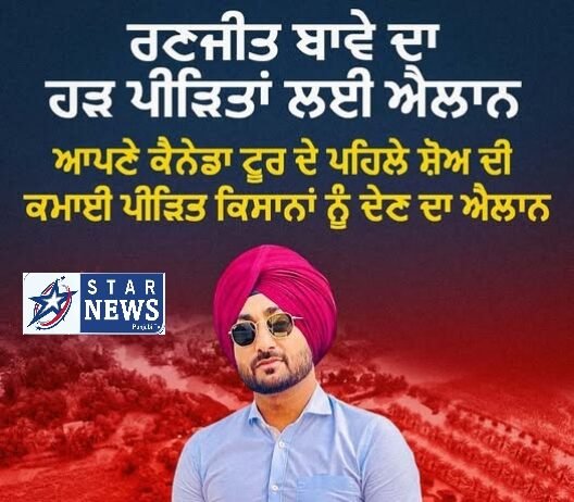 ਰਣਜੀਤ ਬਾਵੇ ਦਾ ਹੜ ਪੀੜਿਤਾਂ ਲਈ ਐਲਾਨ ਆਪਣੇ ਕੈਨੇਡਾ ਟੂਰ ਦੇ ਪਹਿਲੇ ਸ਼ੋਅ ਦੀ ਕਮਾਈ ਪੀੜਿਤ ਕਿਸਾਨਾਂ ਨੂੰ ਦੇਣ ਦਾ ਐਲਾਨ !