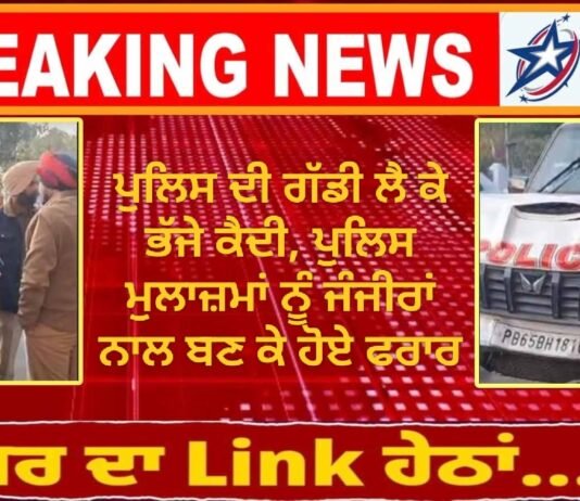 ਪੁਲਿਸ ਦੀ ਗੱਡੀ ਲੈ ਕੇ ਭੱਜੇ ਕੈਦੀ, ਪੁਲਿਸ ਮੁਲਾਜ਼ਮਾਂ ਨੂੰ ਜੰਜੀਰਾਂ ਨਾਲ ਬਣ ਕੇ ਹੋਏ ਫਰਾਰ