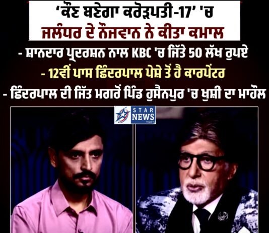 KBC 17’ ‘ਚ ਜਲੰਧਰ ਦੇ ਕਾਰਪੇਂਟਰ ਨੇ ਕੀਤਾ ਕਮਾਲ, ਜਿੱਤੇ 50 ਲੱਖ ਰੁ., ਬਿਗ-ਬੀ ਵੀ ਹੋਏ ਪ੍ਰਭਾਵਿਤ ‘KBC 17’ ‘ਚ ਜਲੰਧਰ ਦੇ ਕਾਰਪੇਂਟਰ ਨੇ...