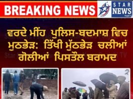 ਵਰਦੇ ਮੀਂਹ ਚ ਪੁਲਿਸ ਅਤੇ ਬਦਮਾਸ਼ ਵਿਚ ਤਿੱਖੀ ਮੁੱਠਭੇੜ: ਚਲੀਆਂ ਗੋਲੀਆਂ ਪਿਸਤੌਲ ਬਰਾਮਦ