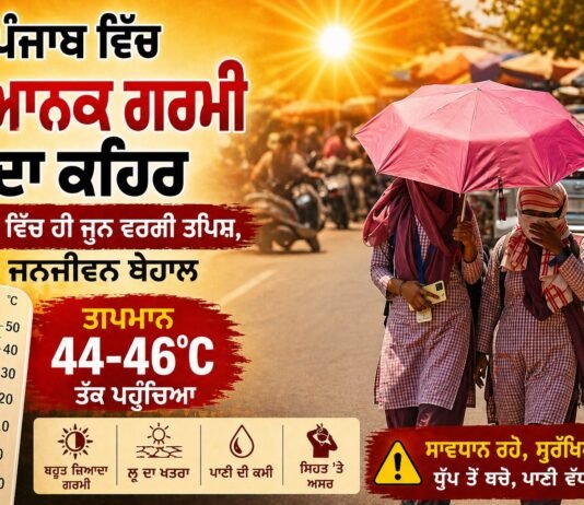 ਪੰਜਾਬ ਵਿੱਚ ਭਿਆਨਕ ਗਰਮੀ ਦਾ ਕਹਿਰ: ਅਪ੍ਰੈਲ ਵਿੱਚ ਹੀ ਜੂਨ ਵਰਗੀ ਤਪਸ਼, ਲੋਕਾਂ ਦਾ ਜੀਵਨ ਪ੍ਰਭਾਵਿਤ