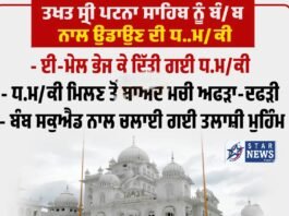 ਤਖ਼ਤ ਸ੍ਰੀ ਪਟਨਾ ਸਾਹਿਬ ਨੂੰ ਬੰਬ ਨਾਲ ਉਡਾਉਣ ਦੀ ਧਮਕੀ, ਲੰਗਰ ਹਾਲ ‘ਚ RDX ਰੱਖਣ ਦੀ ਕਹੀ ਗੱਲ, ਈਮੇਲ ਜ਼ਰੀਏ ਮਿਲੀ ਧਮਕੀ ਚੰਡੀਗੜ੍ਹ !