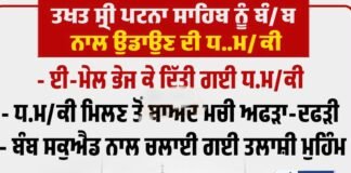 ਤਖ਼ਤ ਸ੍ਰੀ ਪਟਨਾ ਸਾਹਿਬ ਨੂੰ ਬੰਬ ਨਾਲ ਉਡਾਉਣ ਦੀ ਧਮਕੀ, ਲੰਗਰ...