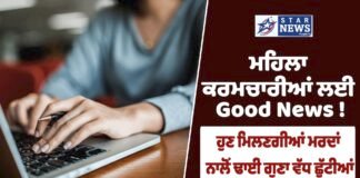ਮਹਿਲਾ ਕਰਮਚਾਰੀਆਂ ਲਈ Good News ! ਮਹਿਲਾ ਨੂੰ ਮਿਲਣਗੀਆਂ ਮਰਦਾਂ ਨਾਲੋਂ...