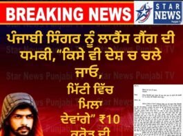 ਪੰਜਾਬੀ ਸਿੰਗਰ ਨੂੰ ਲਾਰੈਂਸ ਗੈਂਗ ਦੀ ਧਮਕੀ,“ਕਿਸੇ ਵੀ ਦੇਸ਼ ਚ ਚਲੇ ਜਾਓ, ਮਿੱਟੀ ਵਿੱਚ ਮਿਲਾ ਦੇਵਾਂਗੇ” ₹10 ਕਰੋੜ ਦੀ ਫਿਰੌਤੀ ਮੰਗੀ,