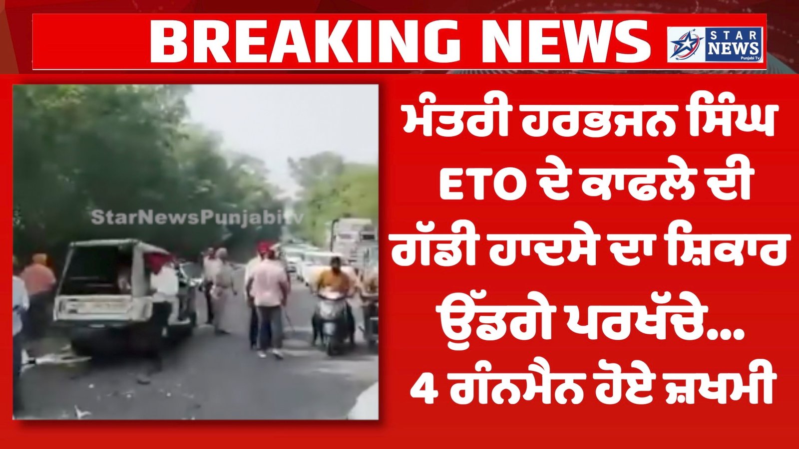 ਜਾਣਕਾਰੀ ਅਨੁਸਾਰ ਅੱਜ ਕੈਬਨਿਟ ਮੰਤਰੀ ਹਰਭਜਨ ਸਿੰਘ ਈਟੀਓ ਵੱਲੋਂ ਹੜ੍ਹ ਪ੍ਰਭਾਵਿਤ ਇਲਾਕੇ ਦੇ ਕਿਸਾਨਾਂ ਨੂੰ ਮੁਆਵਜ਼ੇ ਦੇ ਚੈੱਕ ਦਿੱਤੇ ਜਾ ਰਹੇ ਸਨ, ਜਿੰਨਾਂ ਵੱਲੋਂ ਜਦ ਦੀਨਾਨਗਰ ਤੋਂ ਗੁਰਦਾਸਪੁਰ ਦੇ ਪਿੰਡ ਖੋਖਰ ਤੋਂ ਕਿਸਾਨਾਂ ਨੂੰ ਚੈੱਕ ਦੇਣ ਨੂੰ ਉਪਰੰਤ ਡੇਰਾ ਬਾਬਾ ਨਾਨਕ ਹਲਕੇ ਨੂੰ ਰਵਾਨਾ ਹੋਏ ਤਾਂ ਕਲਾਨੌਰ ਤੋਂ ਥੋੜੀ ਪਿੱਛੇ ਅਚਾਨਕ ਉਨ੍ਹਾਂ ਨਾਲ ਹਾਦਸਾ ਵਾਪਰ ਗਿਆ, ਜਿਸ ਕਾਰਨ 4 ਪੁਲਸ ਕਰਮਚਾਰੀ ਜ਼ਖਮੀ ਹੋ ਗਏ।