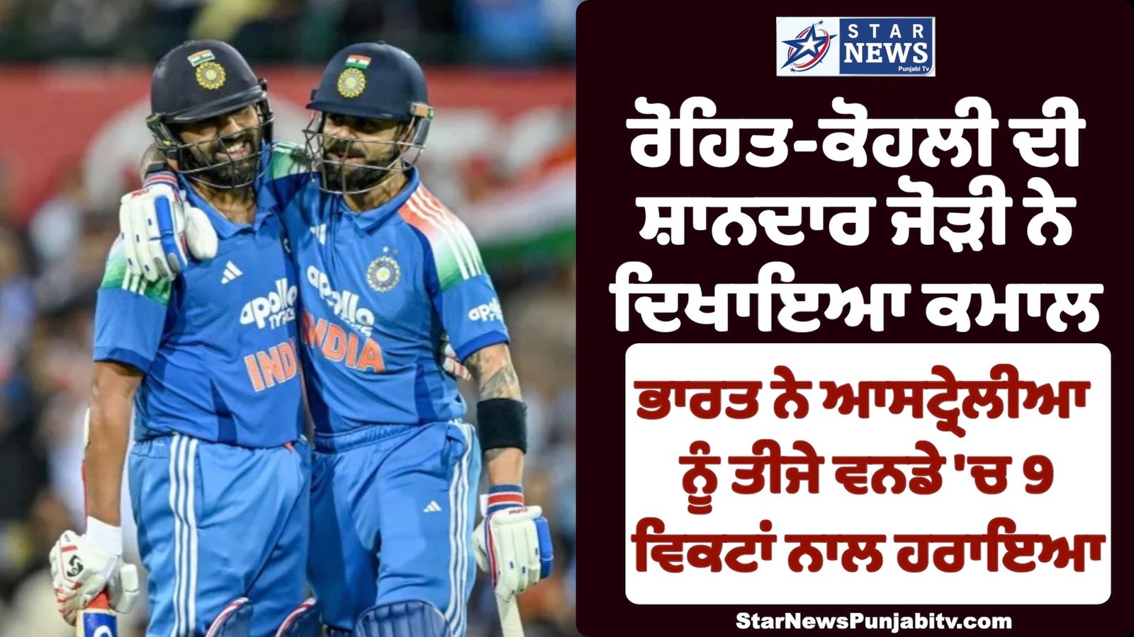 ਭਾਰਤ ਨੇ ਰੋਹਿਤ ਸ਼ਰਮਾ ਅਤੇ ਵਿਰਾਟ ਕੋਹਲੀ ਦੀ ਸ਼ਾਨਦਾਰ ਸਾਂਝੇਦਾਰੀ ਦੀ ਬਦੌਲਤ ਤੀਜੇ ਵਨਡੇ ਮੈਚ ਵਿੱਚ ਆਸਟ੍ਰੇਲੀਆ ਨੂੰ ਨੌਂ ਵਿਕਟਾਂ ਨਾਲ ਹਰਾਇਆ। ਪਹਿਲਾਂ ਬੱਲੇਬਾਜ਼ੀ ਕਰਦੇ ਹੋਏ ਆਸਟ੍ਰੇਲੀਆ ਨੇ 46.4 ਓਵਰਾਂ ਵਿੱਚ 236 ਦੌੜਾਂ ਬਣਾਈਆਂ। ਜਵਾਬ ਵਿੱਚ, ਰੋਹਿਤ ਸ਼ਰਮਾ ਨੇ ਸੈਂਕੜਾ ਅਤੇ ਕੋਹਲੀ ਨੇ ਅਰਧ ਸੈਂਕੜਾ ਲਗਾਇਆ। ਦੋਵਾਂ ਬੱਲੇਬਾਜ਼ਾਂ ਨੇ ਦੂਜੀ ਵਿਕਟ ਲਈ 168 ਦੌੜਾਂ ਦੀ ਸਾਂਝੇਦਾਰੀ ਕੀਤੀ, ਜਿਸ ਨਾਲ ਭਾਰਤ 38.3 ਓਵਰਾਂ ਵਿੱਚ ਇੱਕ ਵਿਕਟ ‘ਤੇ 237 ਦੌੜਾਂ ਤੱਕ ਪਹੁੰਚ ਗਿਆ। ਹਾਲਾਂਕਿ, ਆਸਟ੍ਰੇਲੀਆ ਨੇ ਤਿੰਨ ਮੈਚਾਂ ਦੀ ਲੜੀ 2-1 ਨਾਲ ਜਿੱਤ ਲਈ।