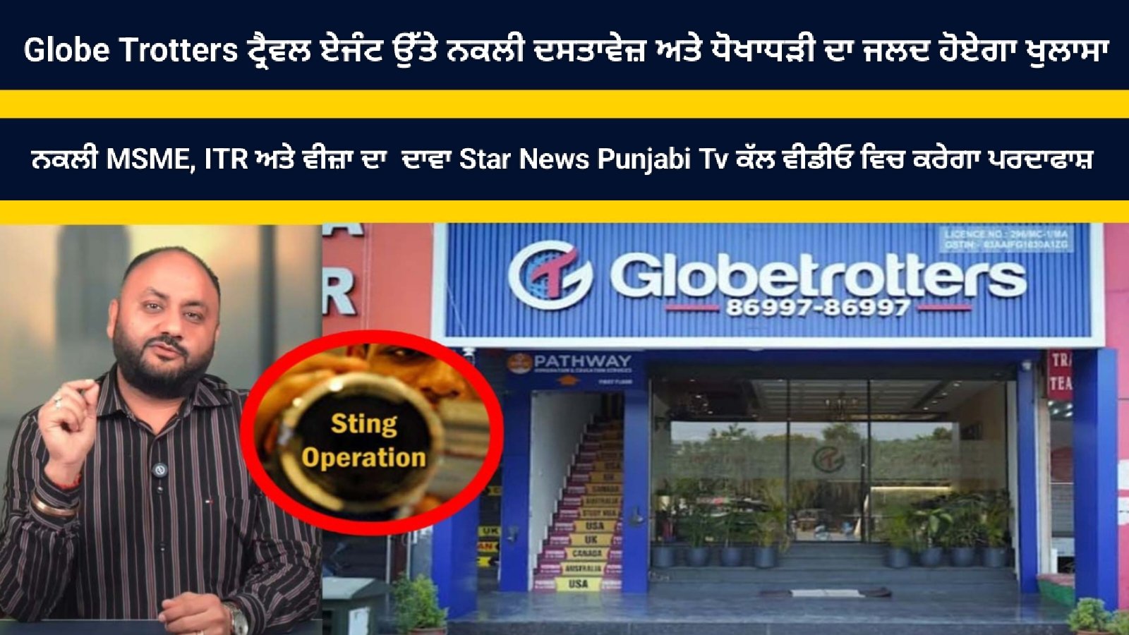 Globe Trotters ਵੱਲੋਂ ਵਿਦੇਸ਼ ਭੇਜਣ ਦੀ ਗੈਰਕਾਨੂੰਨੀ ਯੋਜਨਾ ‘ਨਕਲੀ MSME, ITR ਅਤੇ ਵੀਜ਼ਾ ਦਾ ਦਾਵਾ Star News Punjabi Tv ਕੱਲ ਵੀਡੀਓ ਵਿਚ ਕਰੇਗਾ ਪਰਦਾਫਾਸ਼