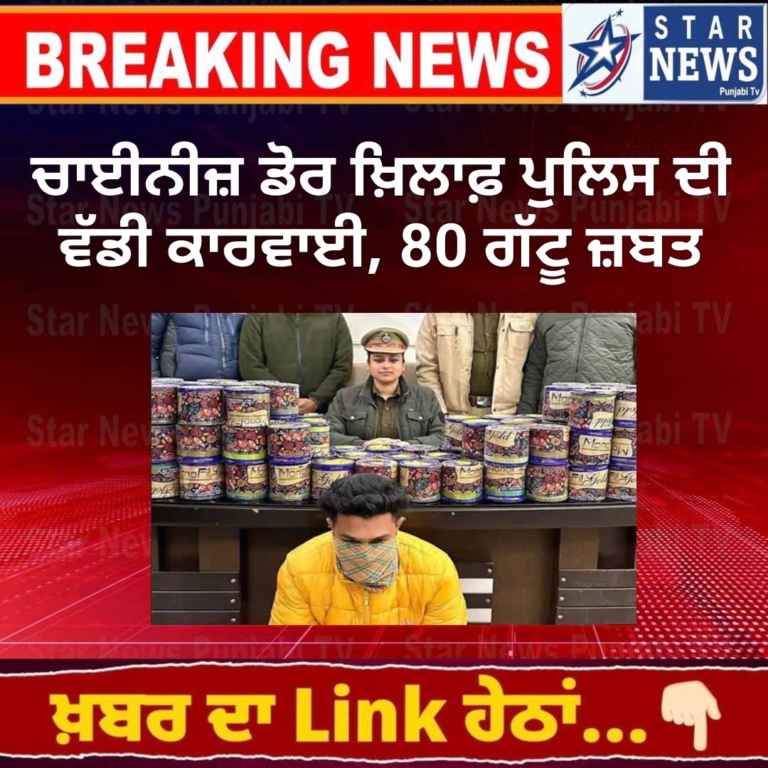 ਛਾਪੇਮਾਰੀ ਦੌਰਾਨ ਪੁਲਿਸ ਨੇ ਇੱਕ ਦੁਕਾਨ ਤੋਂ 80 ਗੱਟੂ ਚਾਈਨੀਜ਼ ਡੋਰ ਬਰਾਮਦ ਕੀਤੀ। ਦੋਸ਼ੀ ਦੀ ਪਹਿਚਾਣ ਸੁਸ਼ੀਲ ਕੁਮਾਰ ਵਾਸੀ ਜਵਾਹਰ ਨਗਰ ਕੈਂਪ ਵਜੋਂ ਹੋਈ ਹੈ। ਪੁਲਿਸ ਨੇ ਸਾਰਾ ਪਾਬੰਦੀਸ਼ੁਦਾ ਸਮਾਨ ਜ਼ਬਤ ਕਰਕੇ ਦੋਸ਼ੀ ਨੂੰ ਕਾਬੂ ਕਰ ਲਿਆ ਹੈ।