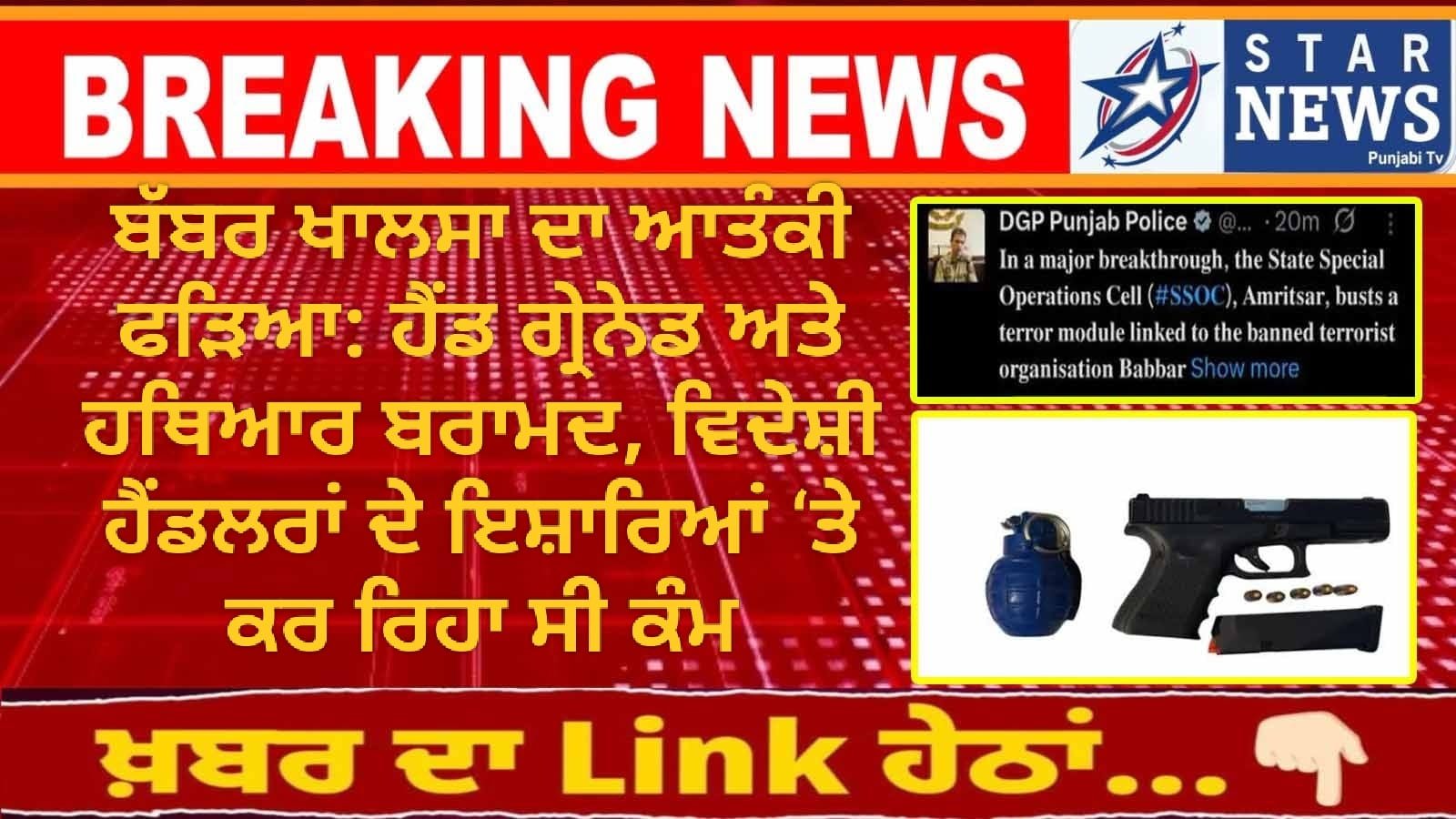 ਬੱਬਰ ਖਾਲਸਾ ਦਾ ਆਤੰਕੀ ਫੜਿਆ: ਹੈਂਡ ਗ੍ਰੇਨੇਡ ਅਤੇ ਹਥਿਆਰ ਬਰਾਮਦ, ਵਿਦੇਸ਼ੀ ਹੈਂਡਲਰਾਂ ਦੇ ਇਸ਼ਾਰਿਆਂ ‘ਤੇ ਕਰ ਰਿਹਾ ਸੀ ਕੰਮ