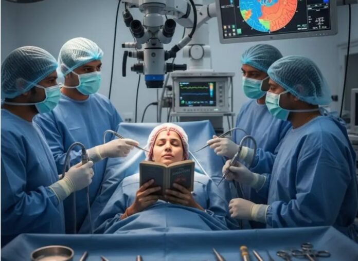 ਜਲੰਧਰ (ਪੰਕਜ਼ ਸੋਨੀ/ ਹਨੀ ਸਿੰਘ)ਜਲੰਧਰ ਦੇ ਇੱਕ ਪ੍ਰਾਈਵੇਟ ਹਸਪਤਾਲ ਵਿੱਚ ਡਾਕਟਰਾਂ ਨੇ 42 ਸਾਲਾ ਮਹਿਲਾ ਦਾ ਬ੍ਰੇਨ ਟਿਊਮਰ ਬਿਨਾ ਪੂਰੀ ਤਰ੍ਹਾਂ ਬੇਹੋਸ਼ ਕੀਤੇ ਸਫਲਤਾਪੂਰਵਕ ਕੱਢ ਦਿੱਤਾ। ਓਪਰੇਸ਼ਨ ਦੌਰਾਨ ਮਹਿਲਾ ਲਗਾਤਾਰ ਹਨੂਮਾਨ ਚਾਲੀਸਾ ਦਾ ਪਾਠ ਕਰਦੀ ਰਹੀ ਅਤੇ ਡਾਕਟਰਾਂ ਦੇ ਸਵਾਲਾਂ ਦੇ ਜਵਾਬ ਦਿੰਦੀ ਰਹੀ।