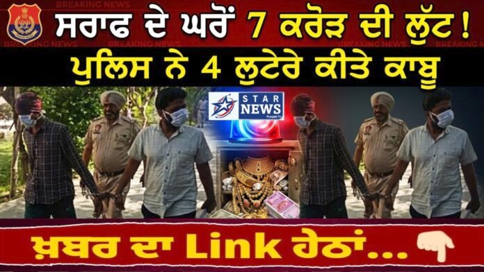 Gurdaspur ਵਿੱਚ ਕੁਝ ਦਿਨ ਪਹਿਲਾਂ ਇੱਕ ਸਰਾਫਾ ਵਪਾਰੀ ਦੇ ਘਰੋਂ ਹੋਈ ਕਰੀਬ 7 ਕਰੋੜ ਰੁਪਏ ਦੀ ਵੱਡੀ ਲੁੱਟ ਦੇ ਮਾਮਲੇ ਵਿੱਚ ਪੁਲਿਸ ਨੂੰ ਵੱਡੀ ਕਾਮਯਾਬੀ ਮਿਲੀ ਹੈ। ਪੁਲਿਸ ਨੇ ਇਸ ਮਾਮਲੇ ਵਿੱਚ ਚਾਰ ਮੁਲਜ਼ਮਾਂ ਨੂੰ ਗ੍ਰਿਫ਼ਤਾਰ ਕਰ ਲਿਆ ਹੈ ਅਤੇ ਉਨ੍ਹਾਂ ਕੋਲੋਂ ਕਾਫੀ ਮਾਤਰਾ ਵਿੱਚ ਸੋਨਾ ਅਤੇ ਨਕਦੀ ਵੀ ਬਰਾਮਦ ਕੀਤੀ ਗਈ ਹੈ।