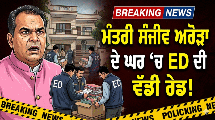 ਲੁਧਿਆਣਾ ਤੋਂ ਇਸ ਵੇਲੇ ਦੀ ਵੱਡੀ ਖ਼ਬਰ ਸਾਹਮਣੇ ਆ ਰਹੀ ਹੈ, ਜਿੱਥੇ ਪ੍ਰਵਰਤਨ ਨਿਰਦੇਸ਼ਾਲੇ, ਯਾਨੀ ਈਡੀ ਵੱਲੋਂ ਪੰਜਾਬ ਦੇ ਕੈਬਿਨੇਟ ਮੰਤਰੀ ਸੰਜੀਵ ਅਰੋੜਾ ਦੇ ਘਰ ਅਤੇ ਹੋਰ ਠਿਕਾਣਿਆਂ ‘ਤੇ ਛਾਪੇਮਾਰੀ ਕੀਤੀ ਗਈ ਹੈ। ਸਵੇਰੇ ਤੜਕੇ ਈਡੀ ਦੀ ਟੀਮ ਕੇਂਦਰੀ ਸੁਰੱਖਿਆ ਬਲਾਂ ਦੇ ਜਵਾਨਾਂ ਨਾਲ ਮੰਤਰੀ ਦੇ ਘਰ ਪਹੁੰਚੀ ਅਤੇ ਉਸ ਤੋਂ ਬਾਅਦ ਘਰ ਅੰਦਰ ਤੇ ਬਾਹਰ ਆਉਣ-ਜਾਣ ‘ਤੇ ਪੂਰੀ ਤਰ੍ਹਾਂ ਪਾਬੰਦੀ ਲਗਾ ਦਿੱਤੀ ਗਈ।