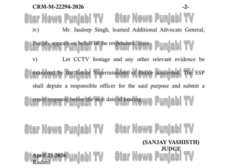 ਅਦਾਲਤ ਨੇ ਹੁਕਮ ਦਿੱਤਾ ਹੈ ਕਿ ਸੰਬੰਧਿਤ ਜ਼ਿਲ੍ਹੇ ਦੇ ਸੀਨੀਅਰ ਸੁਪਰਿੰਟੈਂਡੈਂਟ ਆਫ ਪੁਲਿਸ (SSP) ਵੱਲੋਂ CCTV ਫੁਟੇਜ ਅਤੇ ਹੋਰ ਸਬੰਧਤ ਸਬੂਤਾਂ ਦੀ ਜਾਂਚ ਕੀਤੀ ਜਾਵੇ। SSP ਨੂੰ ਹਦਾਇਤ ਕੀਤੀ ਗਈ ਹੈ ਕਿ ਇੱਕ ਜ਼ਿੰਮੇਵਾਰ ਅਧਿਕਾਰੀ ਨੂੰ ਨਿਯੁਕਤ ਕਰਕੇ ਅਗਲੀ ਸੁਣਵਾਈ ਤੋਂ ਪਹਿਲਾਂ ਵਿਸਥਾਰਪੂਰਵਕ ਰਿਪੋਰਟ ਅਦਾਲਤ ਵਿੱਚ ਪੇਸ਼ ਕੀਤੀ ਜਾਵੇ।