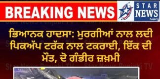 ਭਿਆਨਕ ਹਾਦਸਾ: ਮੁਰਗੀਆਂ ਨਾਲ ਲਦੀ ਪਿਕਅੱਪ ਟਰੱਕ ਨਾਲ ਟਕਰਾਈ, ਇੱਕ ਦੀ...